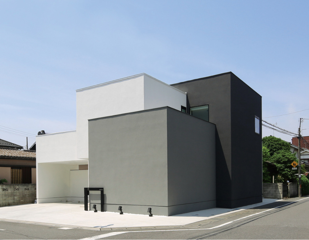 HOME施工例角度で表情を変えるモノクロの造形。大人の遊び心が光る邸宅。