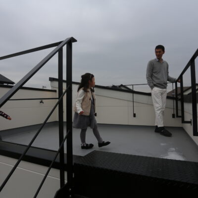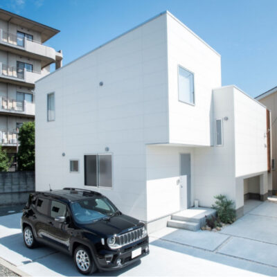 青空に映える白のキューブ。光差し込むテラスのある開放的な家。