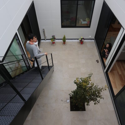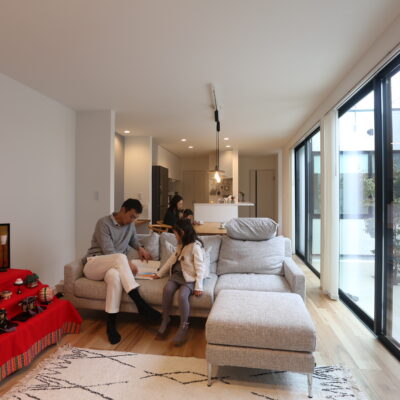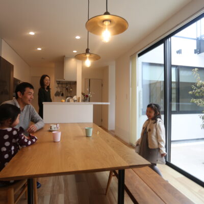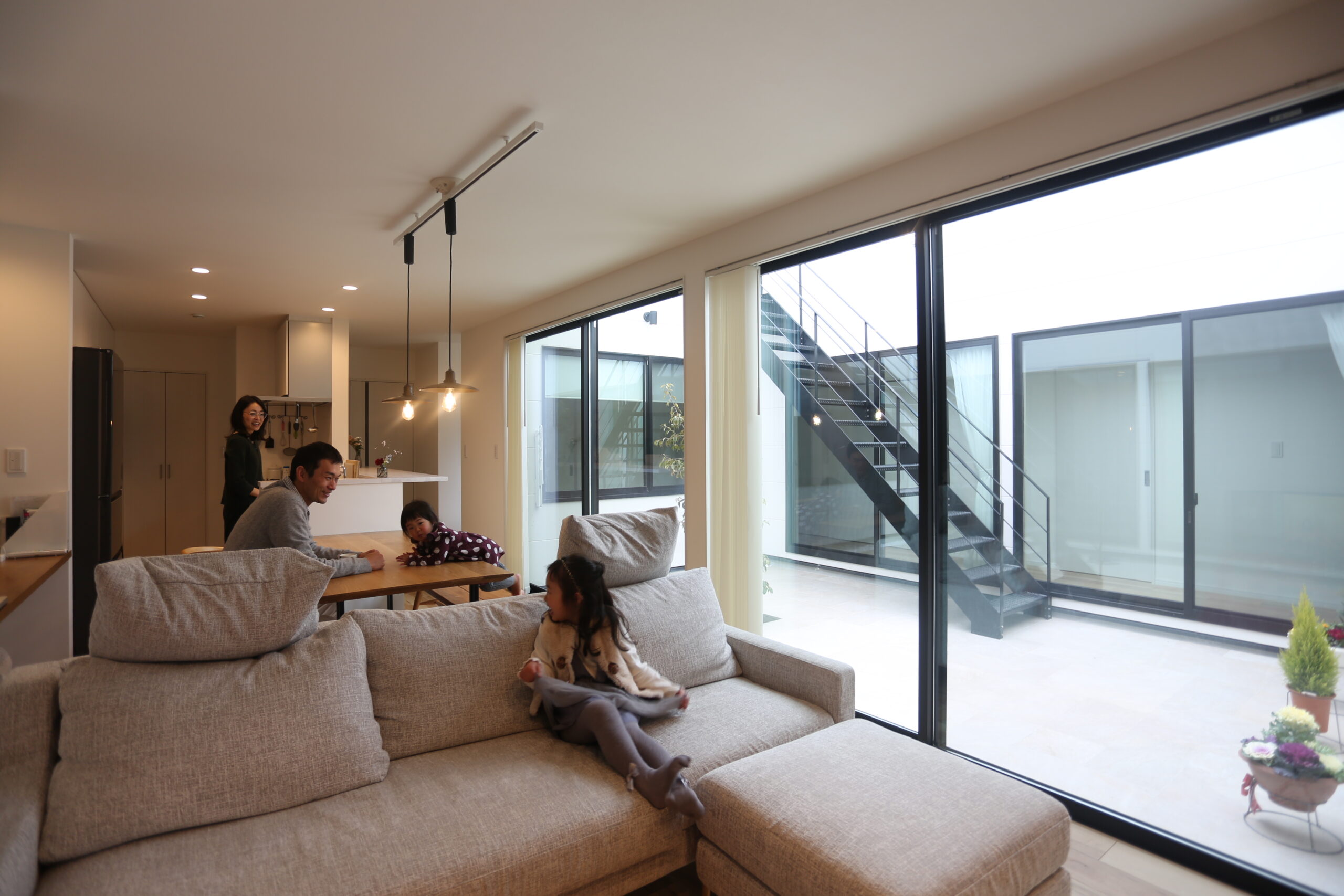 暮らしを彩る坪庭と回廊のある、北欧スタイルの家。