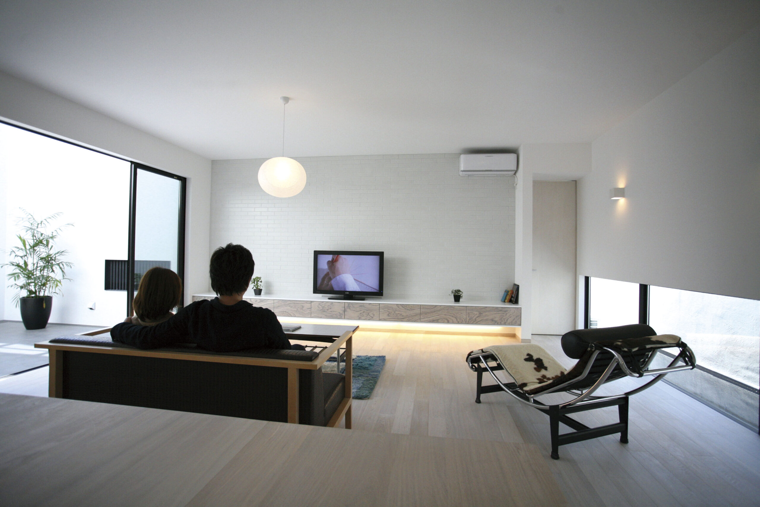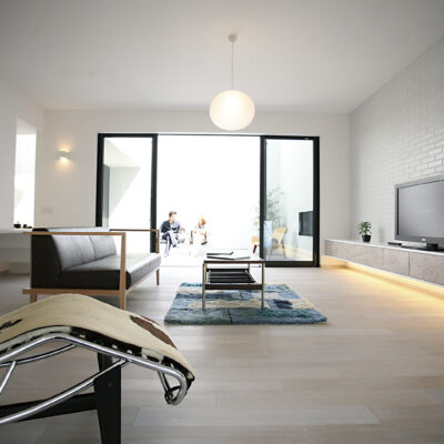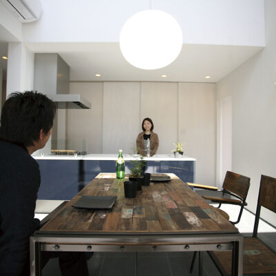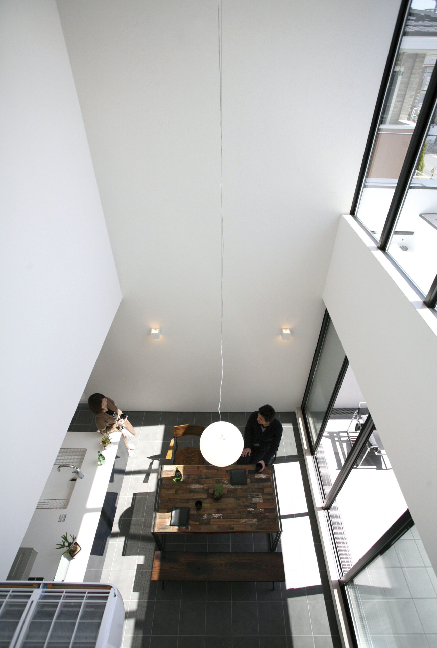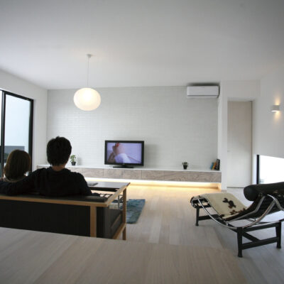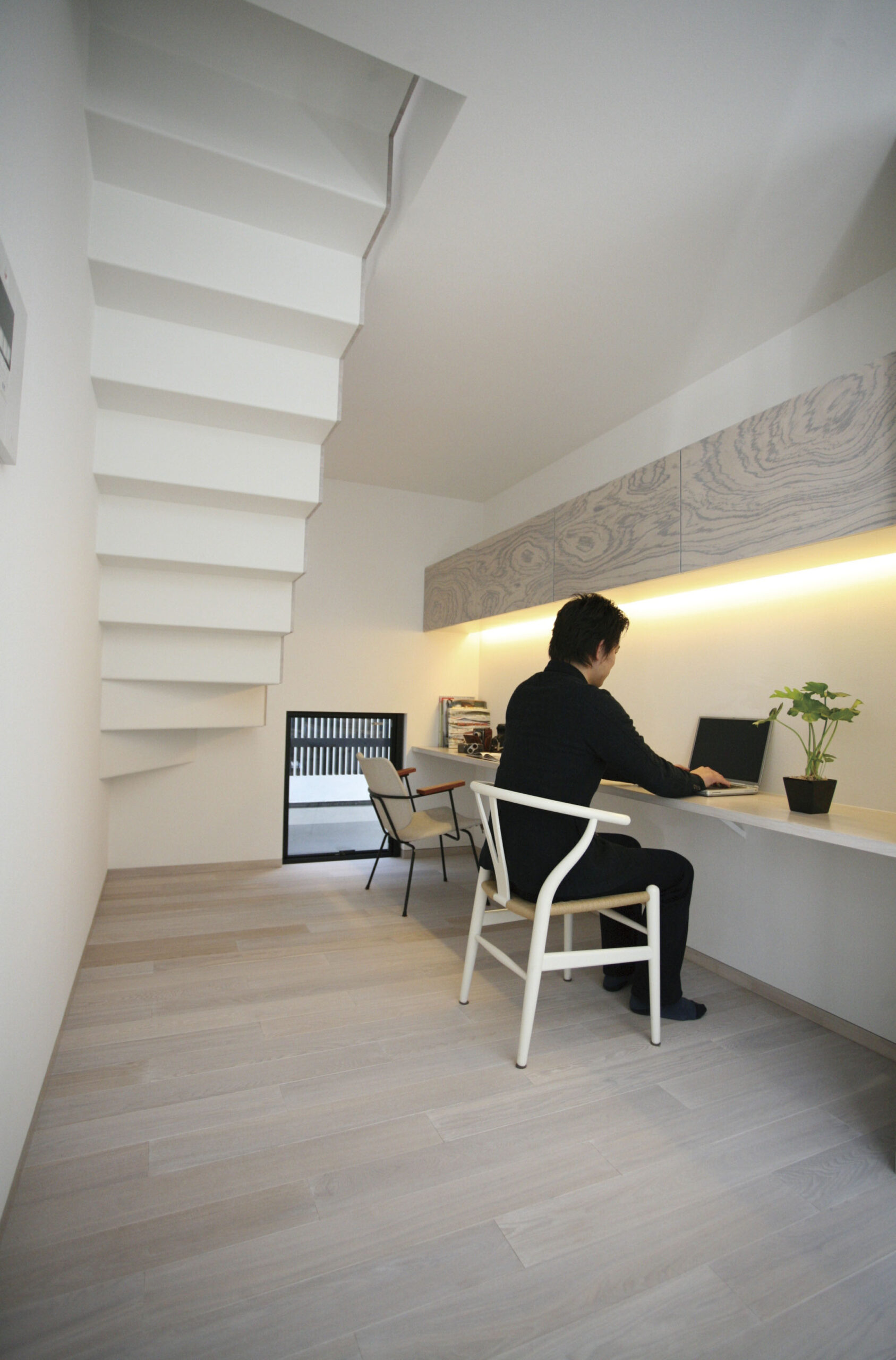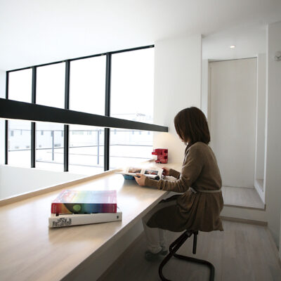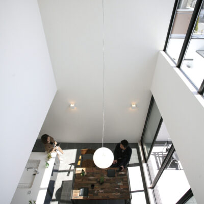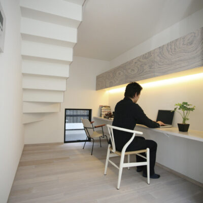 白と木の心地よいコントラスト。家族の気配がつながる多層空間の家。